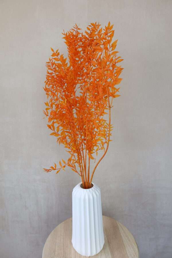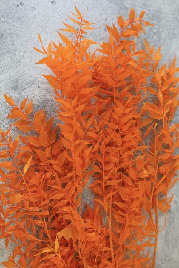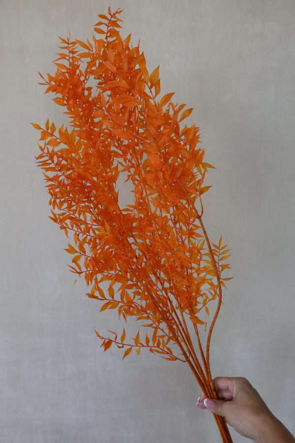 Italian ruscus makes a great, soft accent. These Italian ruscus bunches are bleached to a nice orange.